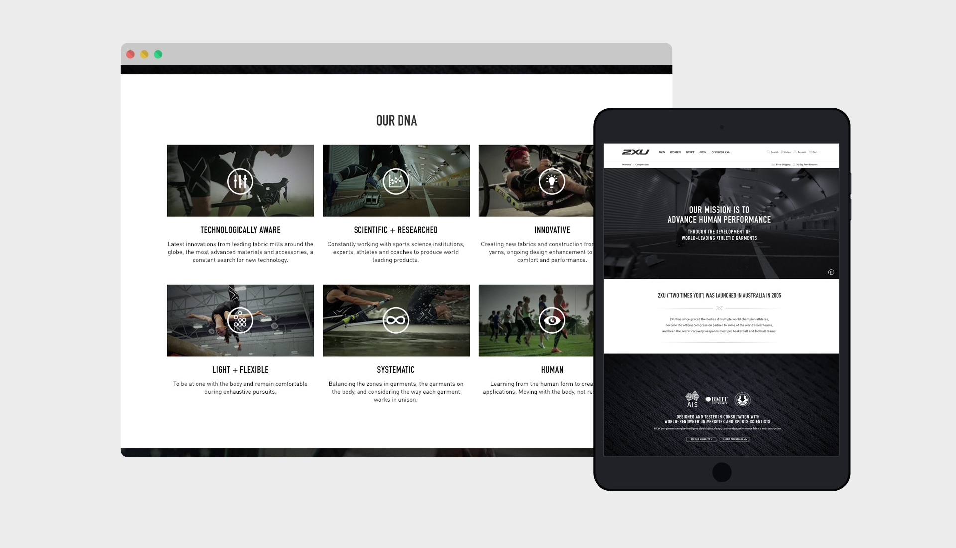 Done as part of a small team of two designers to streamline and redesign 2XU’s global websites as well as EDM templates and other digital branding and communication. The main aims were to produce a more premium look that matched how the brand positioned itself and to make the process of viewing, learning about and purchasing products easier and more enjoyable. Ceol’s role involved UX & UI design, web & graphic design, copywriting and web testing.